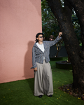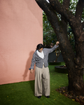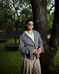 The pattern brings character while the oversized collar and fluid shape add attitude without the effort. It’s not just an overshirt, it’s a state of mind.