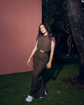 Clean lines, confident form. The Column Cut Set is a sculpted two-piece that redefines feminine structure with an effortless edge. The cropped button-down top meets a long, streamlined skirt for a silhouette that feels refined yet unapologetically current.
