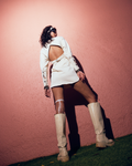 Not your typical statement dress. The Fluff Dress walks the line between soft and strong - clean up front, unexpected at the back. The structured fit sculpts the body, while the open-back cut keeps things playful, effortless, and a little unpredictable.